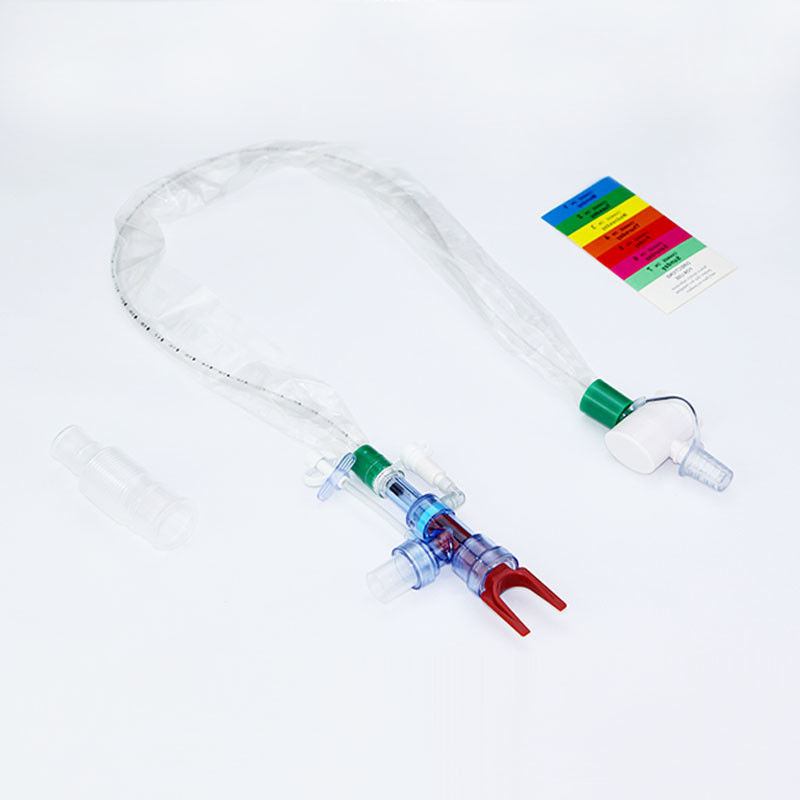 使い捨て可能な閉鎖した吸引のカテーテルは患者からの体液のsuctioningを行うように設計されている外科装置である。このカテーテルは医学等級材料の、それが使用のために安全であることを保障するなされ。によってどちらかのエチレン オキシド(EO)またはガンマ線の技術を使用して伝染の危険を減らすことを殺菌する。カテーテルはまた品質管理および安全のためのISO13485標準に合うために証明される。